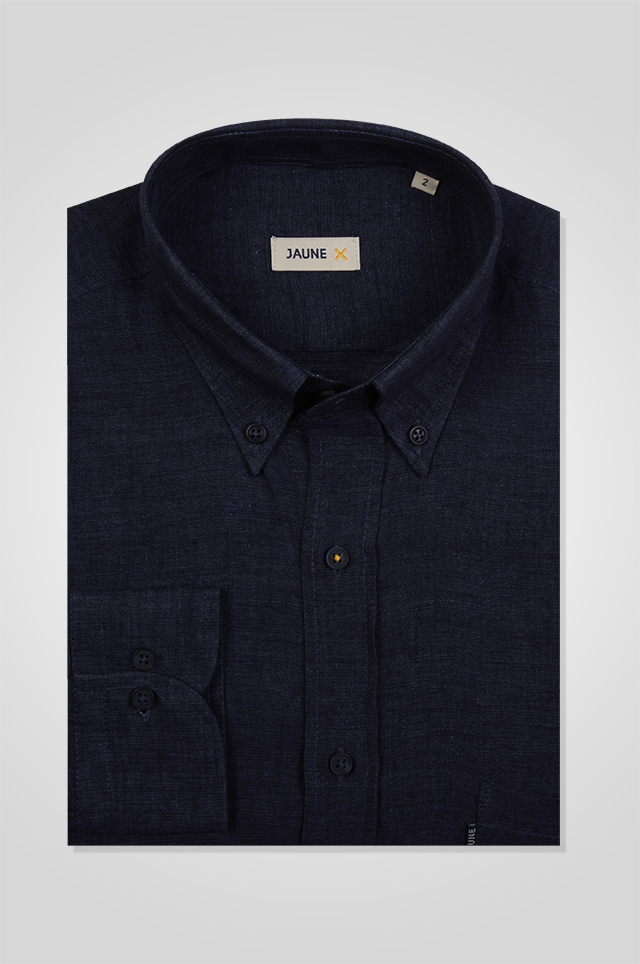 Regular Fit Navy Linen Shirt