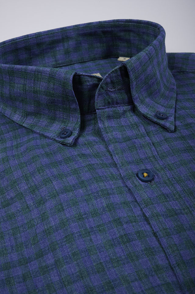 Regular Fit Purple/Green Check Linen Shirt