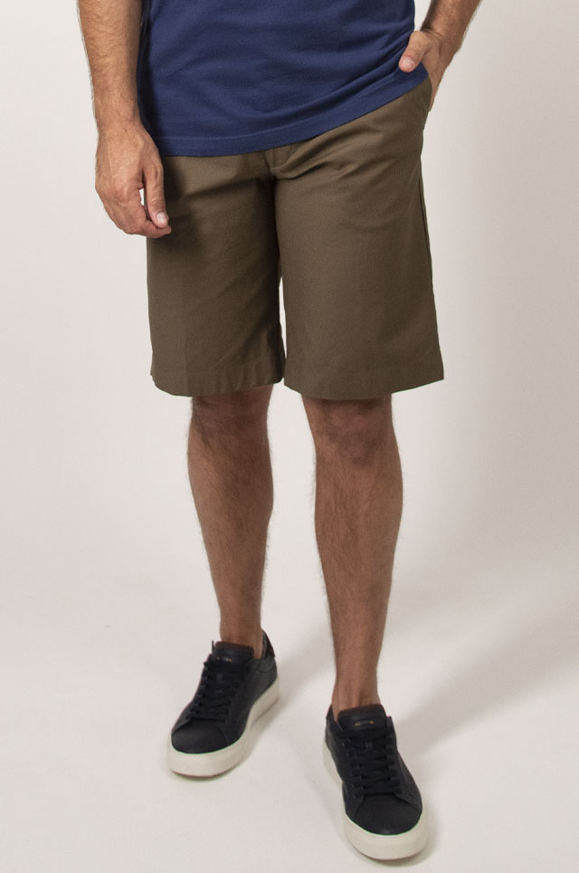 Custom-Fit bermuda with zip-fly button closure, two Italian front pockets and two welt back pockets.