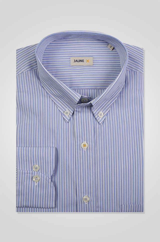 The button-down collar is casual and cannot be worn with a suit and tie. It is best paired with denim or chinos and a blazer.